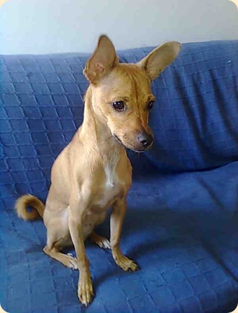 Pohjoisessa asuessani vuokraisännälläni oli jonkun aikaa pieni koira, sekarotuinen kääpiöpinsseri,ja koska hänen ukrainalainen tuontivaimonsa ei kauheasti pidä koirista, oli pieni Jimmy usein luonani,lopuksi niin,että Jimmy vietti puolet ajastaan vuokraisännän luona ja puolet minun luonani.Ihastuin siihen pieneen olentoon totaalisesti. Kun vuokraisäntä päätti,ettei hän voikaan pitää koiraa(tässä esimerkki,mitä tapahtuu,kun koiran hankintaa ei mietitä loppuun asti).Itse en silloin voinut sitä ottaa, sillä olin muuttamassa tänne keskiseen Israeliin ja kaikki oli vielä aika auki.Jimmy onneksi kuitenkin löysi hyvän kodin:-)